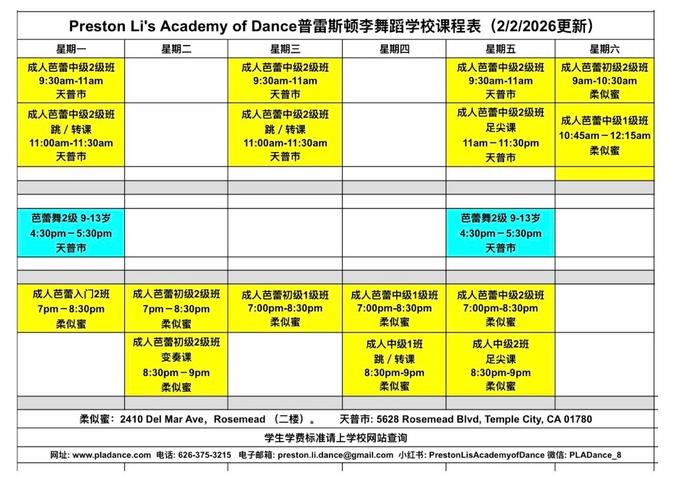 Preston Li’s Academy of Dance sends important information and announcements via e-mail. Please be sure we have your most current email address at all times. While we do our best to keep them current, schedules are subject to change.